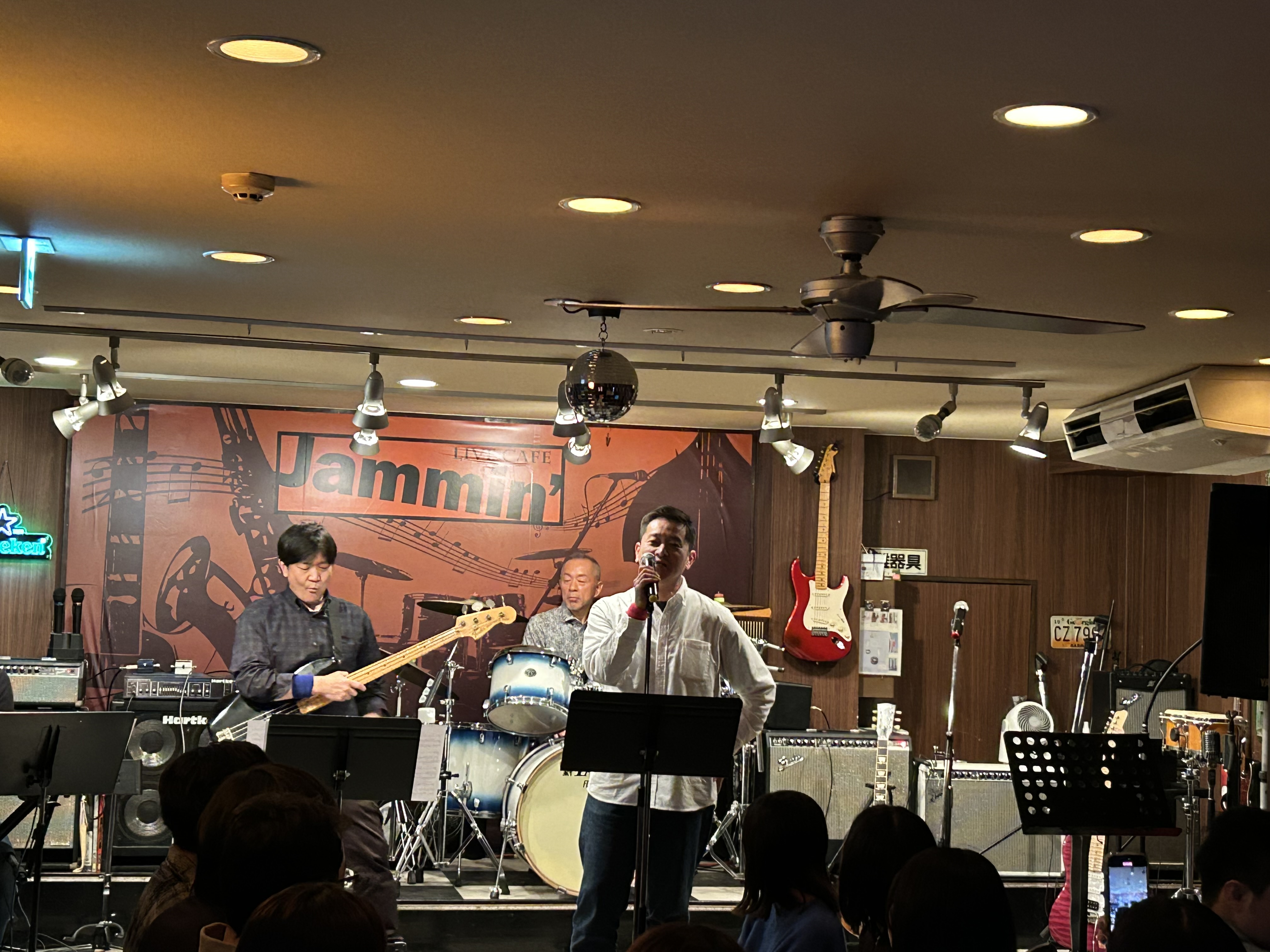 山崎社長の企画で、川越市のライブカフェ『Jbmmin’(ジャミン)』様にて、新和バンドの演奏で新入社員の歓迎会を行いました。